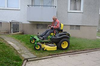Zu unseren Tätigkeiten gehören nicht nur das Reinigen von Beeten und Rabatten, sondern auch die Pflege von großen Rasenflächen.