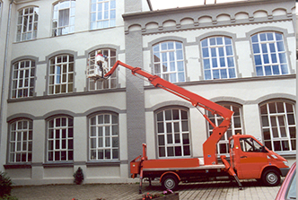 Diese Fenster lassen sich nicht von innen reinigen und müssen von außen in luftiger Höhe gereinigt werden.