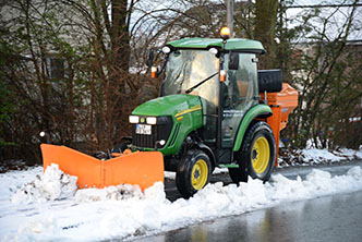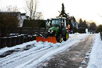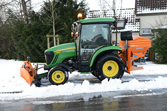 Mit unserem, auf Winter ausgerüsteten JOHN DEERE, sind wir nicht nur in der Lage, kleine Wege und Flächen von Eis und Schnee zu befreien, sondern können auch private Straßen, Gehwege und Parkplätze schnell und kostengünstig räumen.
