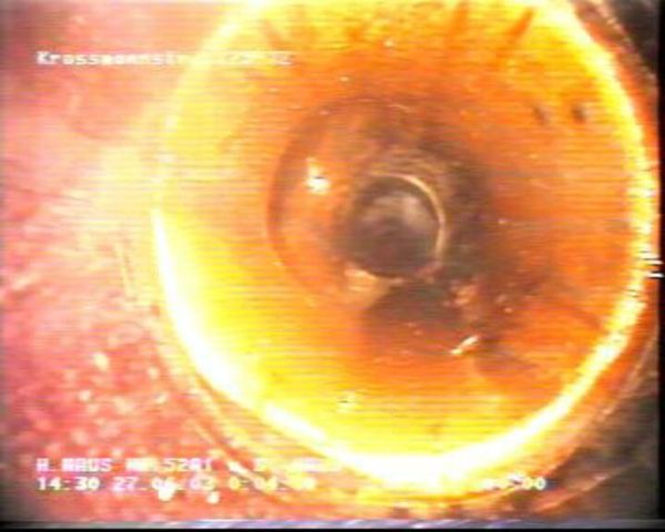 Bei der Untersuchung des Kanals wurde festgestellt, das er alt und marode war. Die Anschlussstücke waren nicht mehr sauber vorhanden. Die Rohre beschädigt, so dass das Abwasser nicht mehr sauber abfließen konnte. Hinzu kam, das die hintere Dachfläche durch die Grundwasserleitungen des Hauses abgeleitet wurde. Die gesamte Hydraulik des Abwassersystems stimmte nicht mehr.