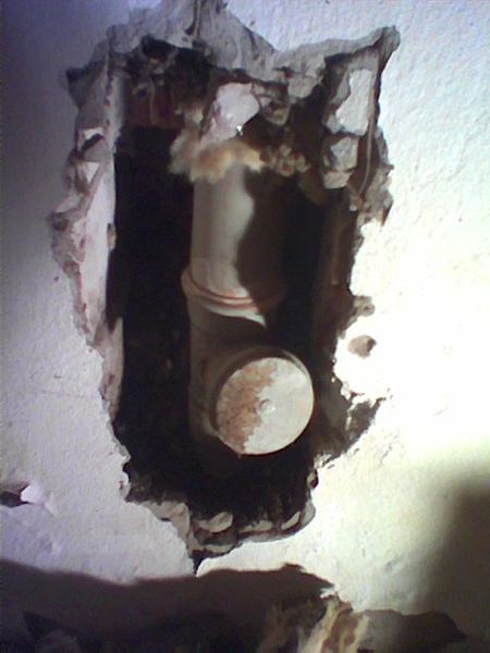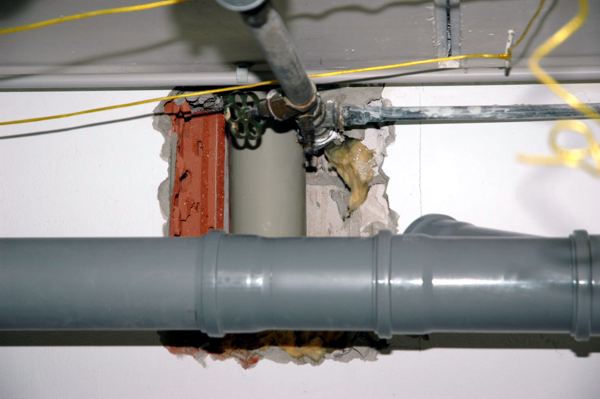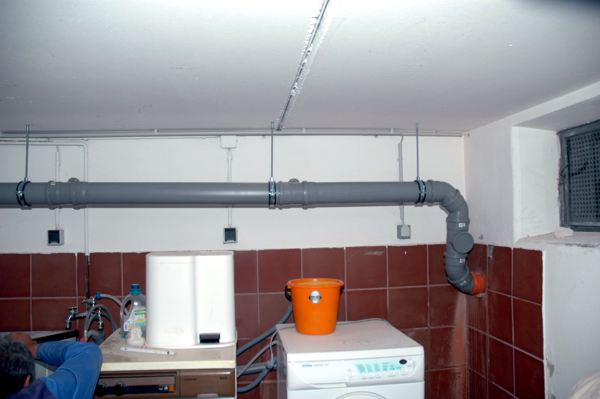 Die Fallrohre wurden unter der Kellerdecke gesucht und freigelegt.