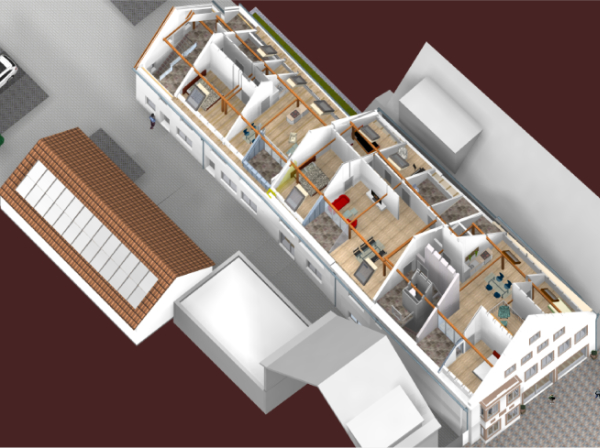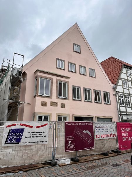 In der Mittelstr. entstehen 2 Ladenlokale, eine Praxis auch als Büro nutzbar und 6 Wohnungen mit Größen von 58 bis 107 qm. Die Fertigstellung ist für Oktober 2023 geplant, das Gebäude wird nach KFW 55 saniert.